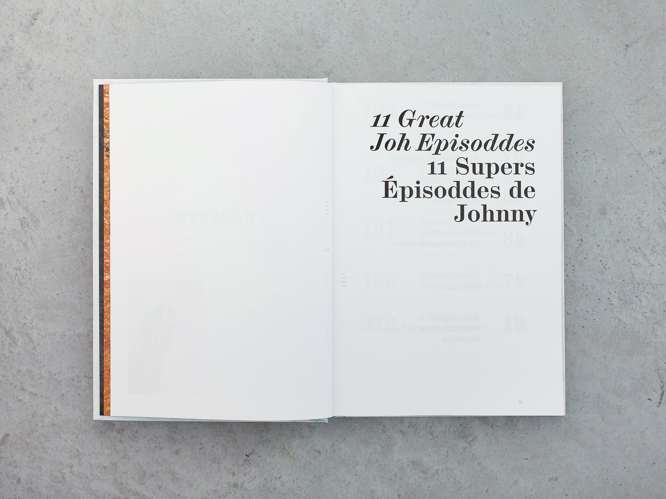 éditions Adéra nous ont retenus pour concevoir le livre de l’artiste Jean-Alain Corre, regroupant une sélection significative de son travail entre 2009 et 2016, notamment des expositions au Palais de Tokyo, à l’IAC de Villeurbanne ou à la galerie Cortex Athletico. L’ouvrage s’articule autour de 11 épisodes de Johnny, ponctués d’interludes, permettant une représentation de sa pratique. Nous avons proposé une maquette évolutive, avec notamment les titres-courants des parties qui bougent et changent et les pages de parties où un travail de métamorphose de la police de caractère Times tend vers un dessin linéal.